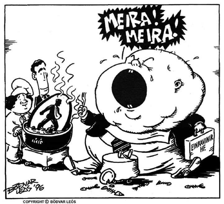 Vikublaðið, 12. janúar 1996. Tilefni: Einkavæðing banka og fyrri einkavæðingar, t.d. SR-mjöl.